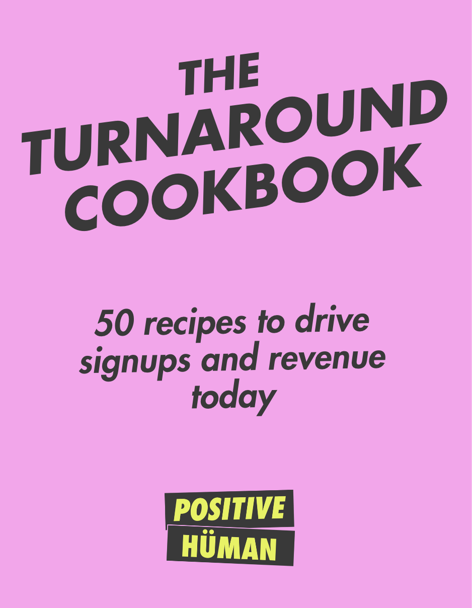 The Turnaround Cookbook is a collection of 50 'recipes' that you can put into action today to drive signups and revenue right away.